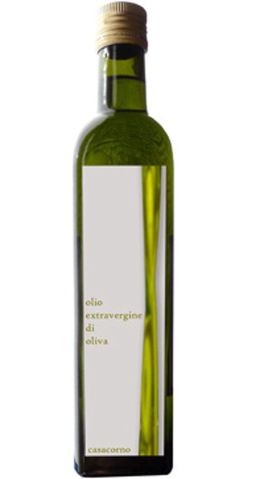 De olijfolie extravergine van Casacorno onderscheidt zich door karakter, body en een rijke schakering in verschillende olijfsoorten. Hij verleidt door zijn kleur, geur, smaak en kostelijke nasmaak. Het bijzondere karakter van de extravergine Casasorno wordt gevormd door de bodem, het klimaat, de variëteit in olijven en het (hand)werk.